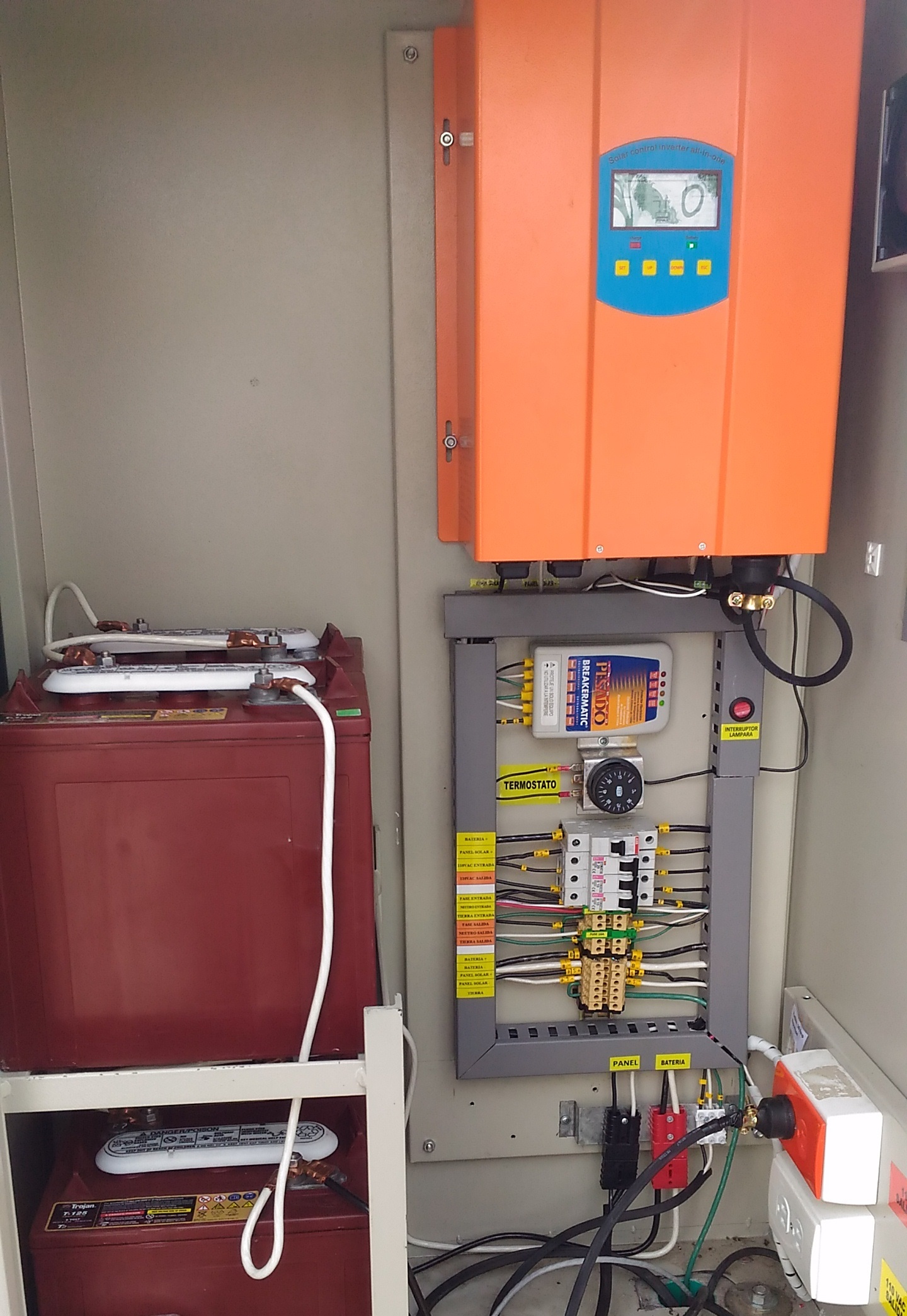 Para la de 8 horas el montaje se hizo con 2 paneles solares de alta potencia y 4 baterías. El inversor hibrido se configuro para tener un balance entre la energía solar y la red local. Las 12 horas se lograron implementando 4 paneles solares, 6 baterías y un inversor hibrido que prioriza la batería y la energía de los paneles para maximizar la potencia generada.
